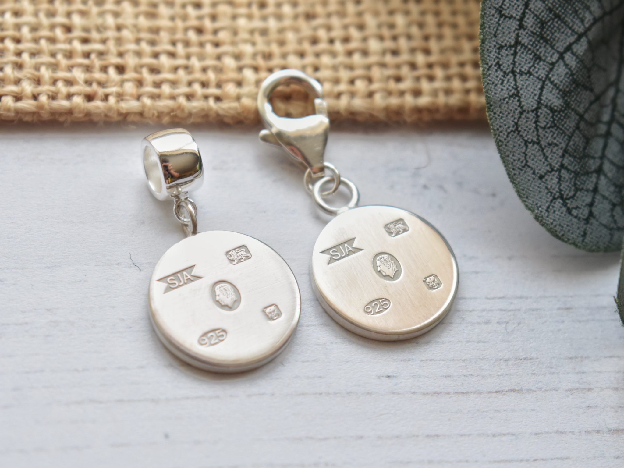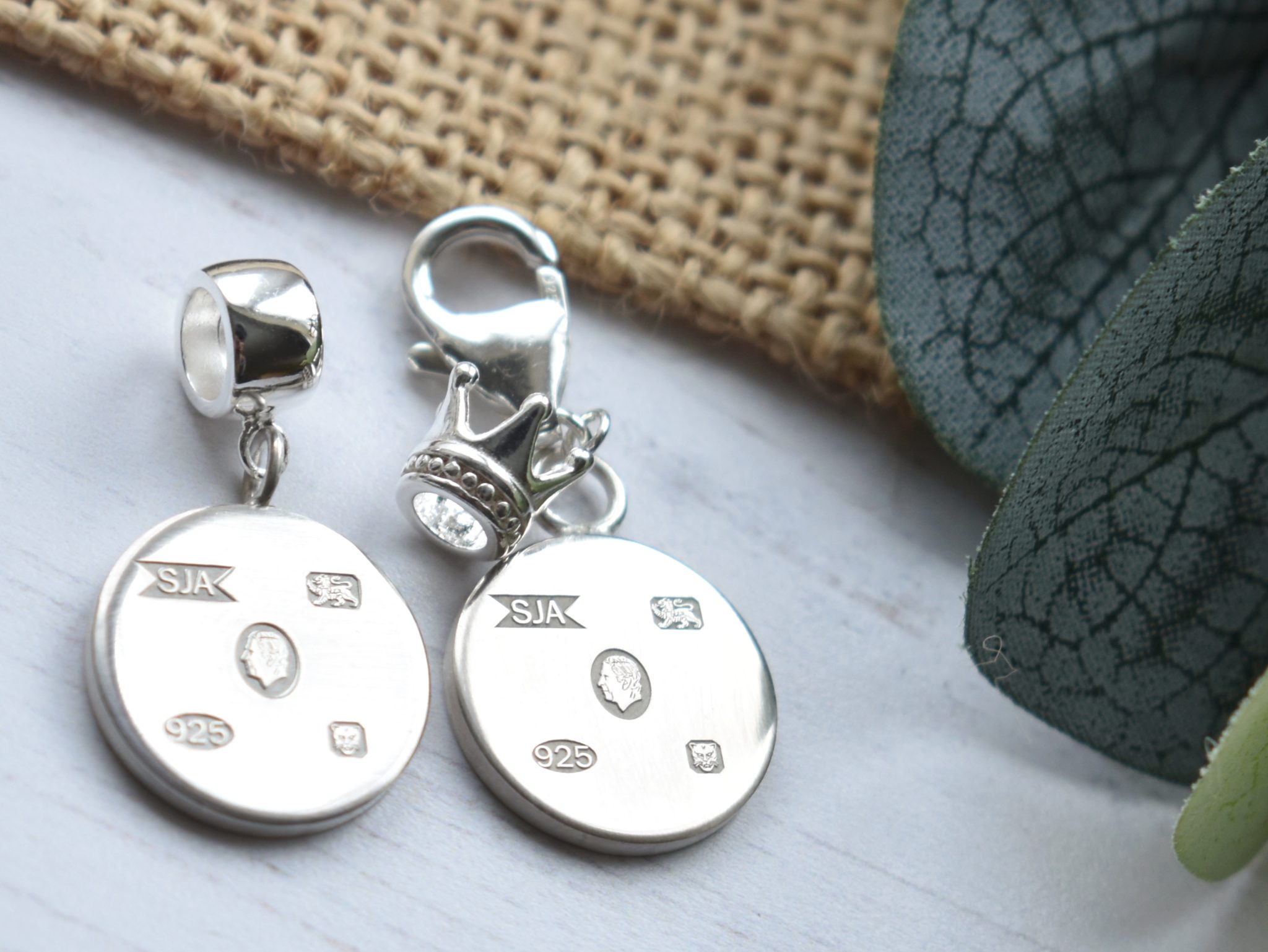 A new commemorative mark has been designed by the Assay Offices of the UK, to celebrate His Majesty The King’s Coronation and we are excited to showcase our beautiful LIMITED edition solid Sterling Silver charm showing the new Deep 3D Lasered commemorative hallmark which shows the King’s head against an oval background.