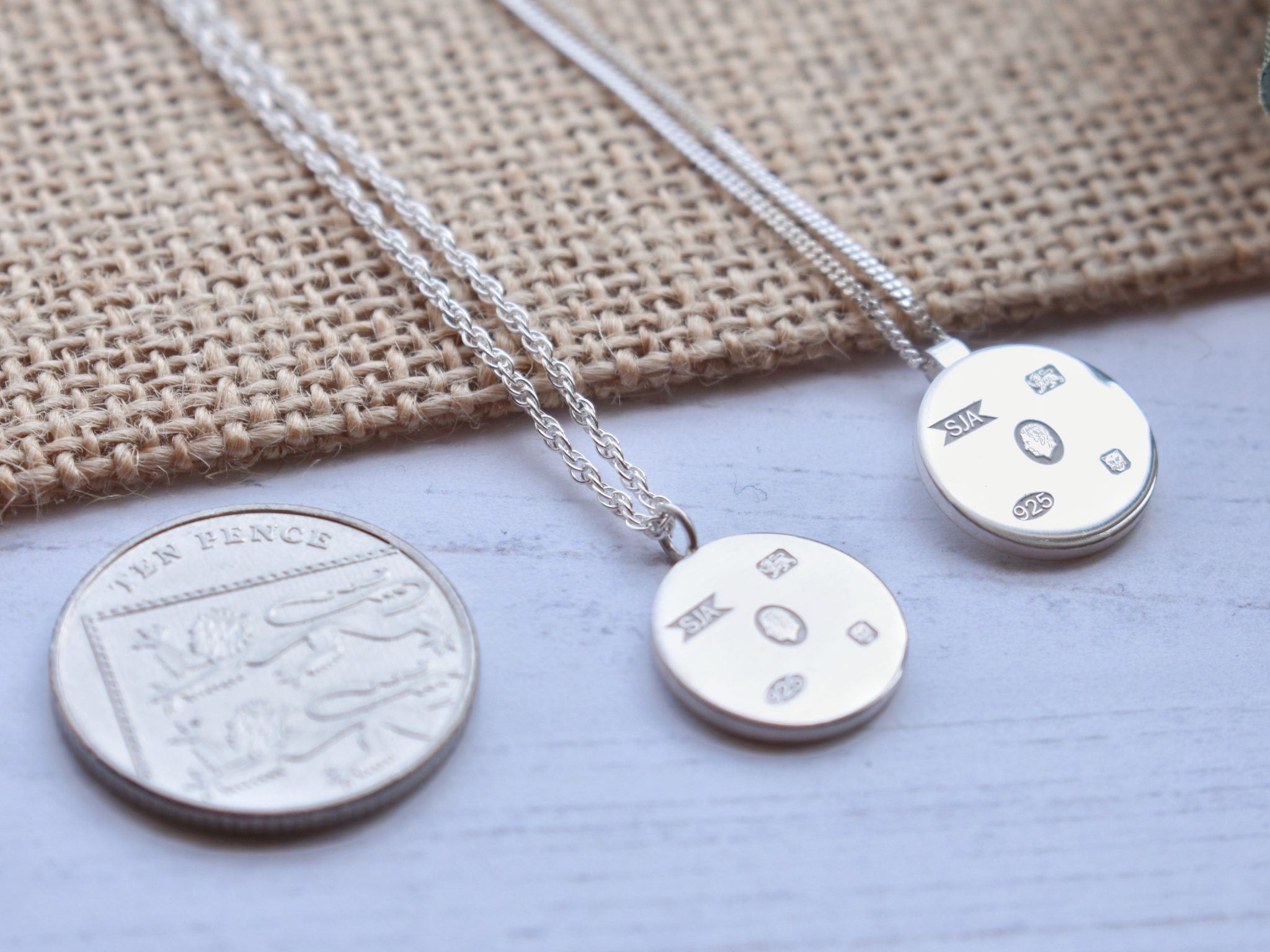 The pendant measures approximately 15 mm in diameter and 1.5mm thick. (Please note as these are all handmade slight differences in size and shape are to be expected).