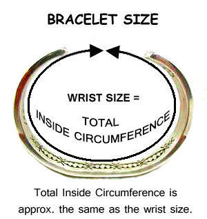 For example, if your wrist measures 6 1/2″, a bracelet that has a 5 1/4″ inside circumference end to end and a 1 1/4″ gap has a total inside circumference of 6 1/2″ and should fit you well.