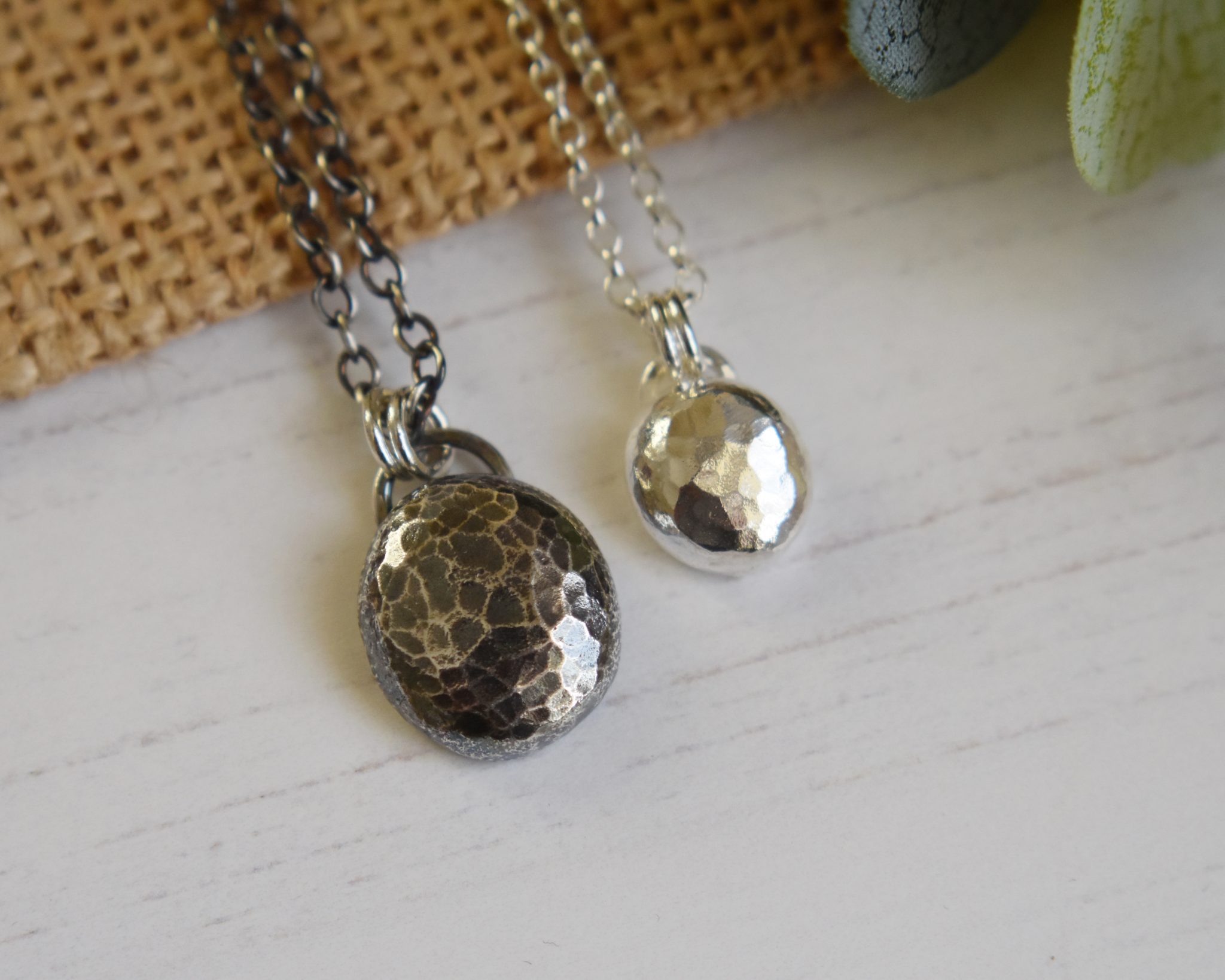 Pebble Hammered Necklace, Organic Sterling Silver Pendant, Zero Waste Jewellery Recycled, UK